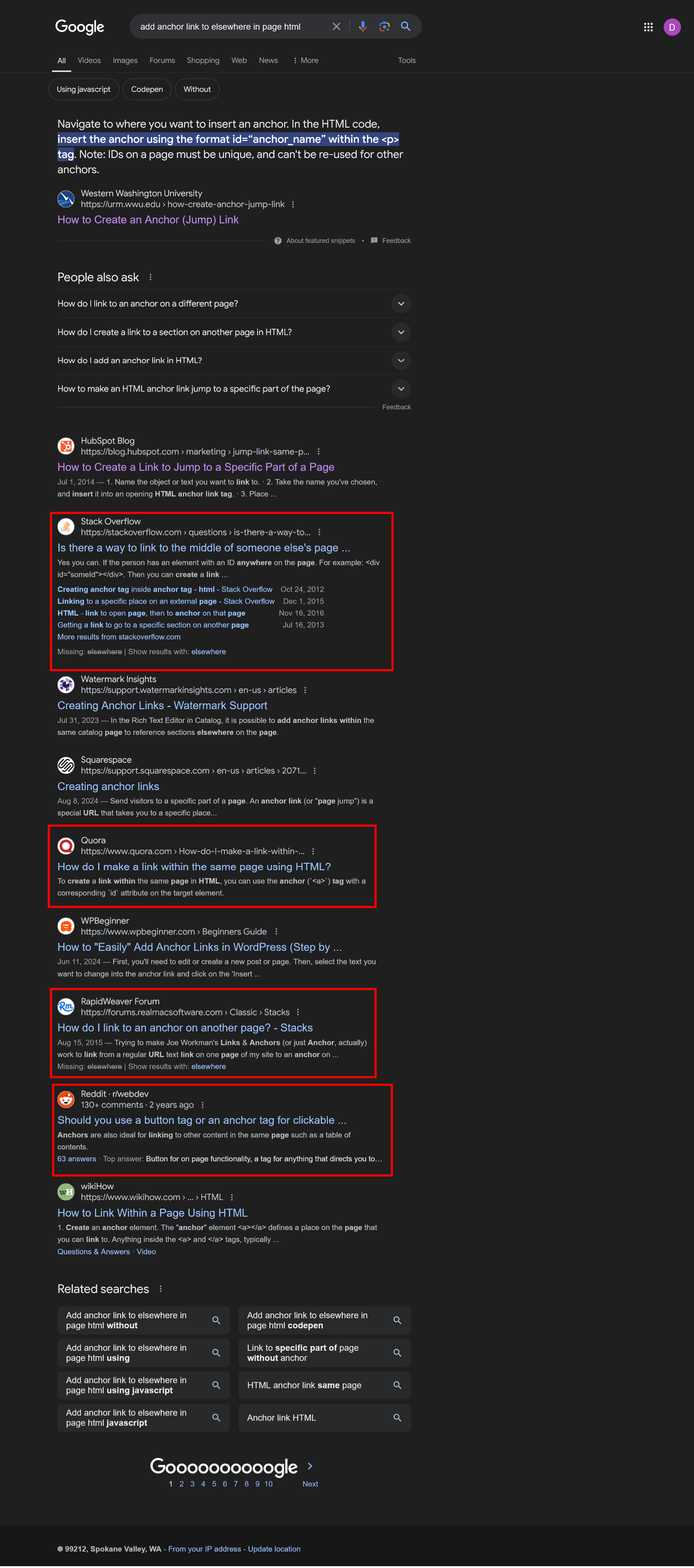 Now we’re seeing communities rise back to prominence. Reddit’s user count is comparatively modest for social media platforms, at around 500 million. Quora has over 400 million unique visitors per month. Both have a much larger audience through Google. You’ll see entries from both platforms, as well as smaller forums, in the top results for many queries. For example, if I search something about how to link internally on a web page, four of the ten results on the page are community posts, including Reddit, Quora and two niche forums.