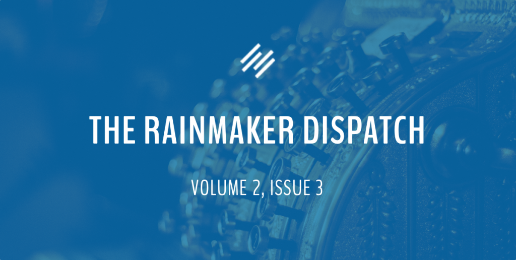 And that actually may not be the MOST compelling of the articles we’ve curated for you below, ready for Volume 2, Issue 3 of the Rainmaker Dispatch? On with the show …