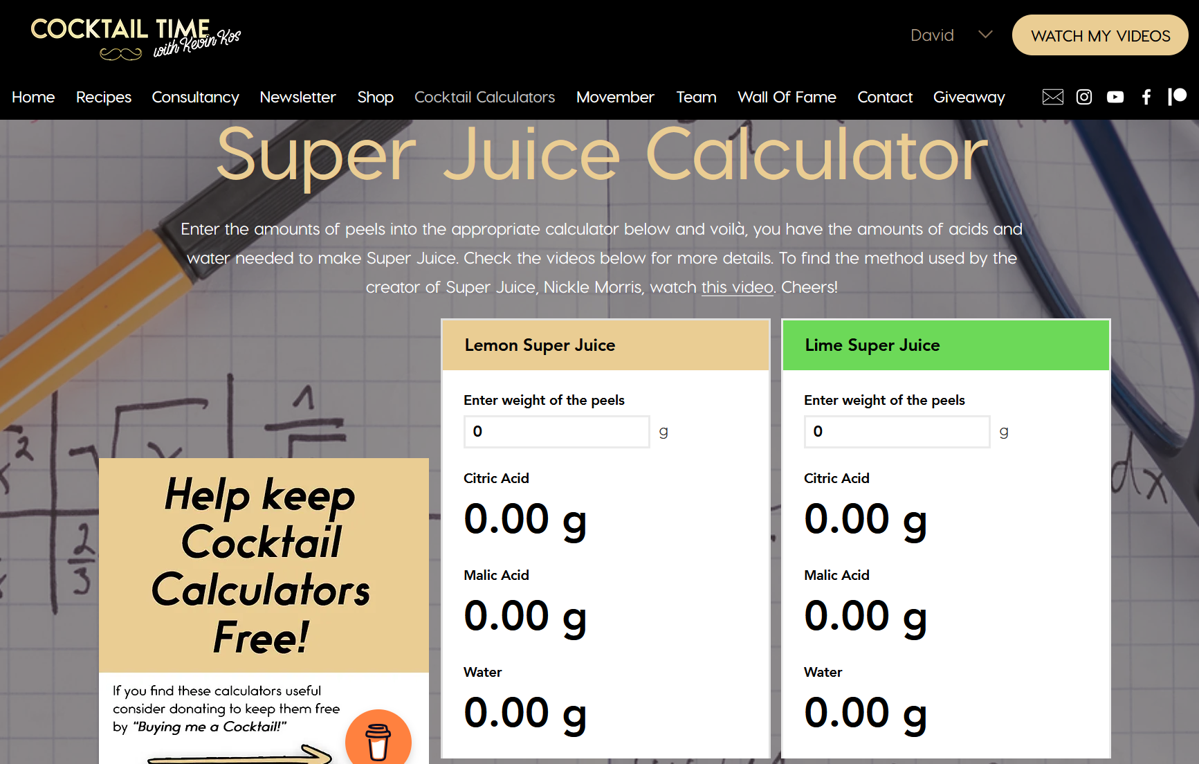 A tool: This can be as simple as a spreadsheet or a calculator. For example, I make a cocktail ingredient called “super juice” pretty regularly; I used to do the calculations myself, but Kevin Kos’s super juice calculator is so much easier. He asks for an email address to access it, and the trade is worth it for me.