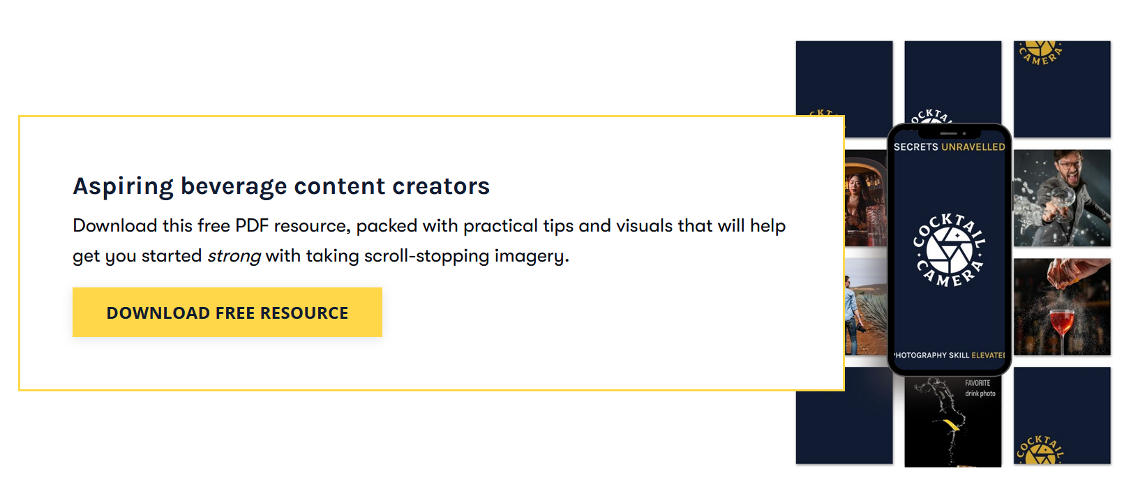 Unique experience: If you have a perspective that few people can offer, it’s a great way to differentiate your lead magnet. The frontman of rock band The Darkness, Justin Hawkins, does this with his Patreon. He offers insights into his creative process as a musician. Cocktail influencer Jordan Hughes doesn’t just offer recipes — as an expert freelance food and beverage photographer, he also offers courses on cocktail photography as a free course at the top of his sales funnel.
