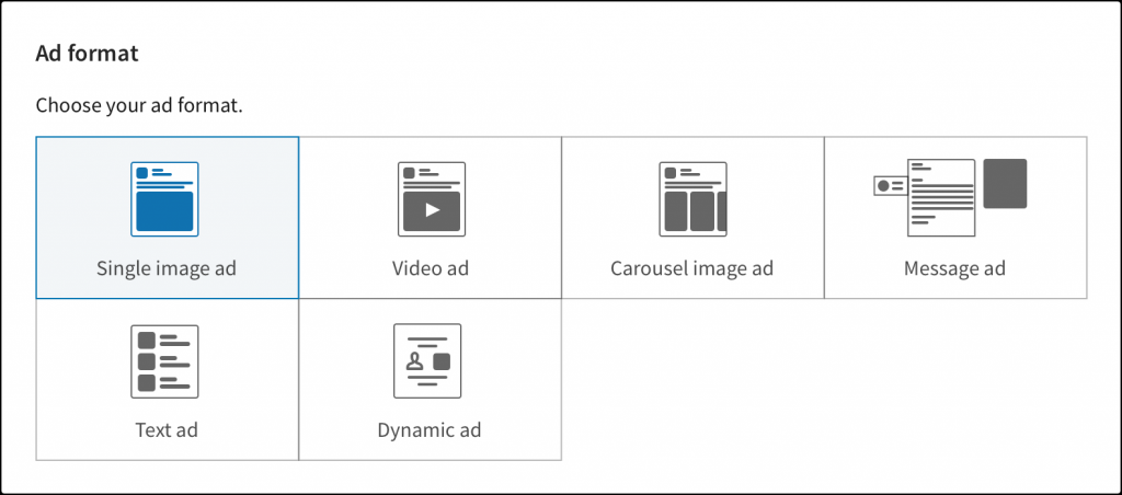 One challenge is that you can NOT change the ad type or format within a campaign. Once you select a type of ad you are then limited by the available ad formats. You can iterate as many versions of that format as you want but you can’t change the type of ad or use more than one format in a campaign.