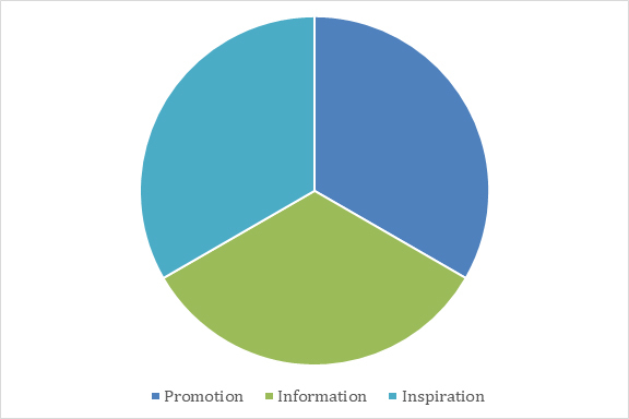 - Consumer Services: 35% promotion, 25% information, and 40% inspiration