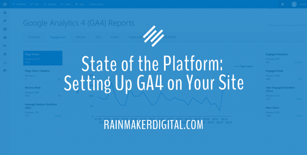 We’ve added a native GA4 integration to Rainmaker Platform so you can see your web statistics within the platform, just as you can with UA. This month’s State of the Platform explains how to set up (or update) your Google Analytics account, connect it to your Rainmaker Platform site and view data on either Google Analytics or on the platform.