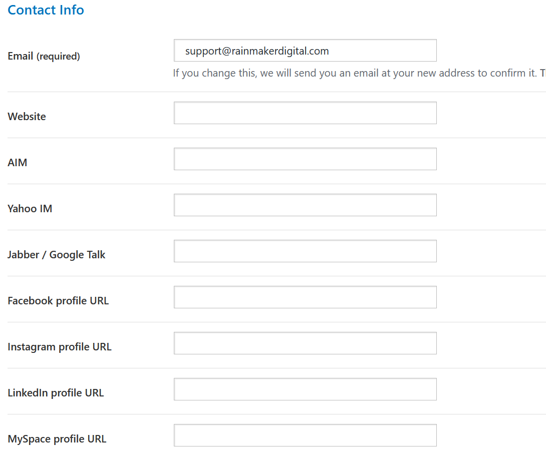 Under “Contact Information,” you can add whatever socials you would like to include on the profile page.