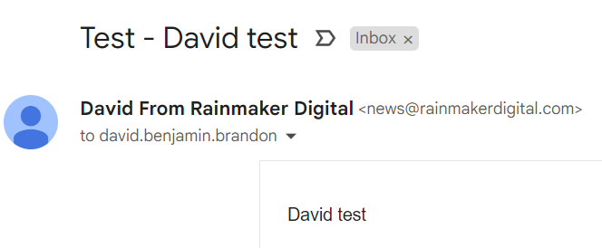 You can see that the [firstname] field in my subject line and the body of the email have been populated with my name.